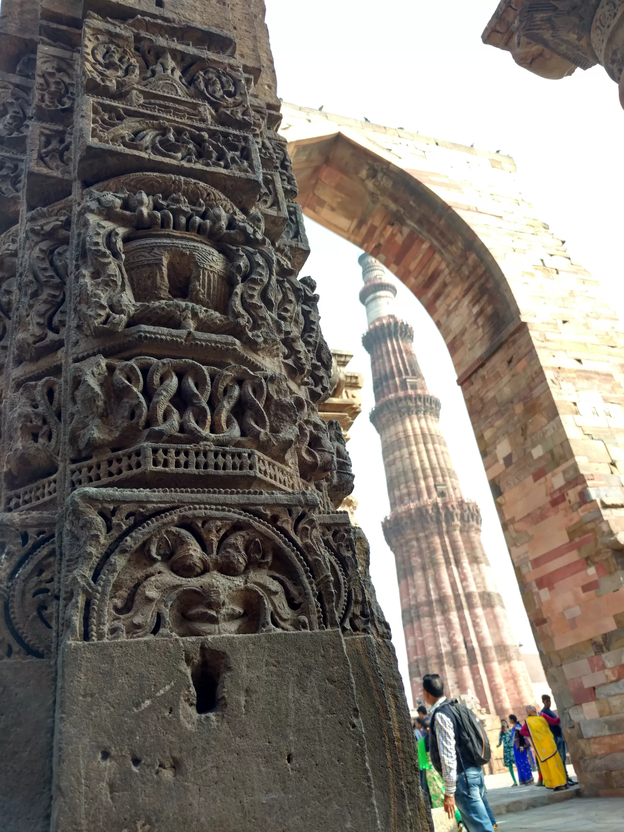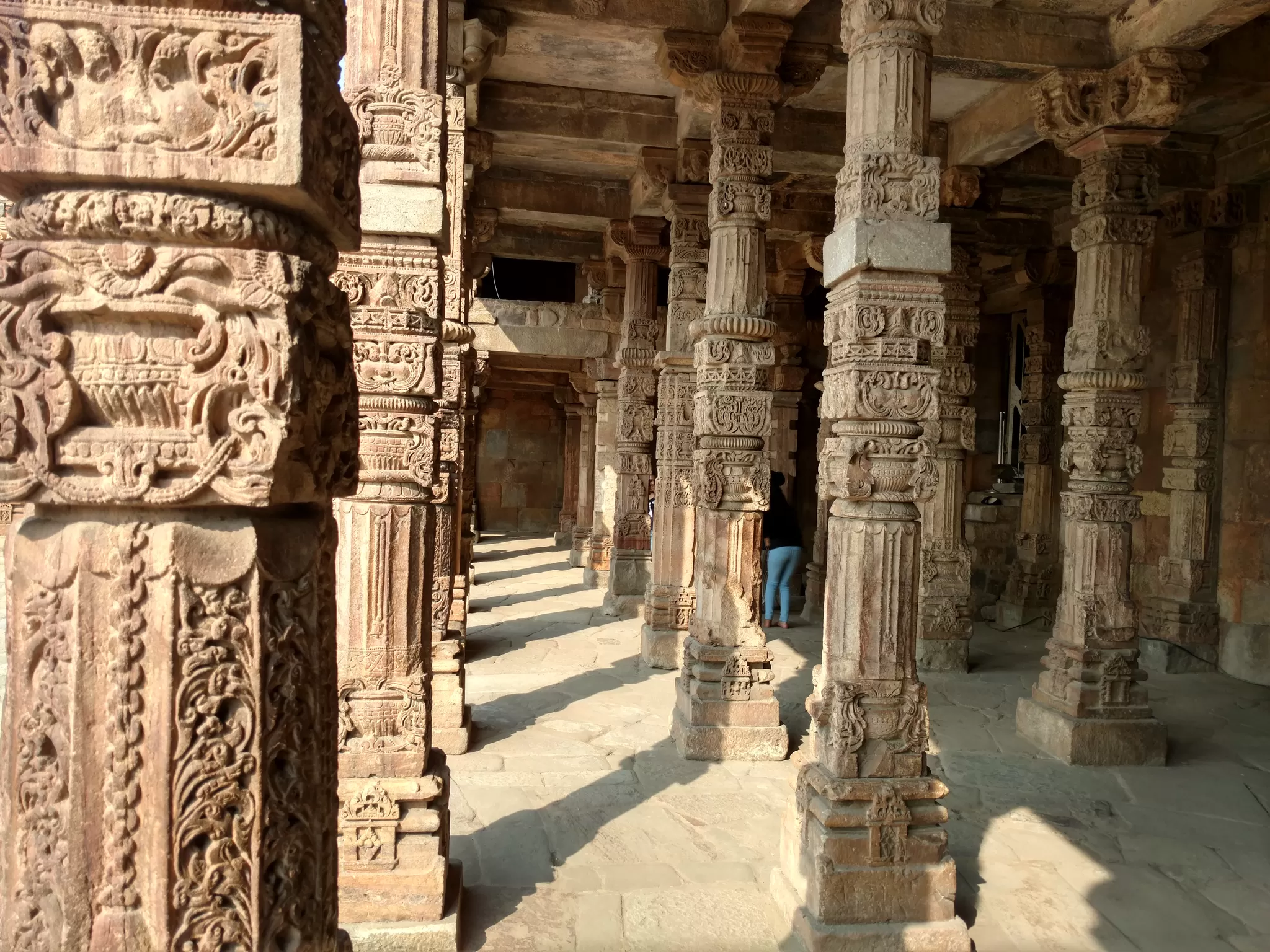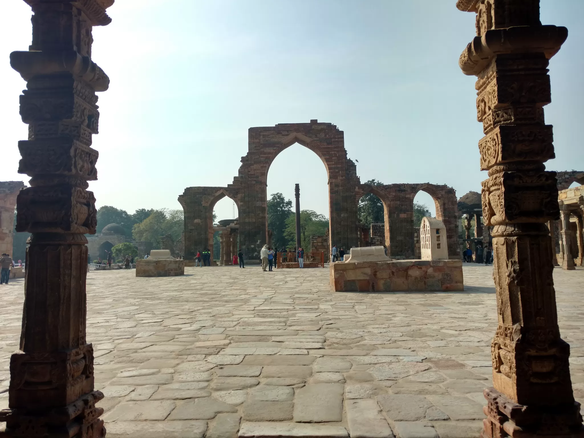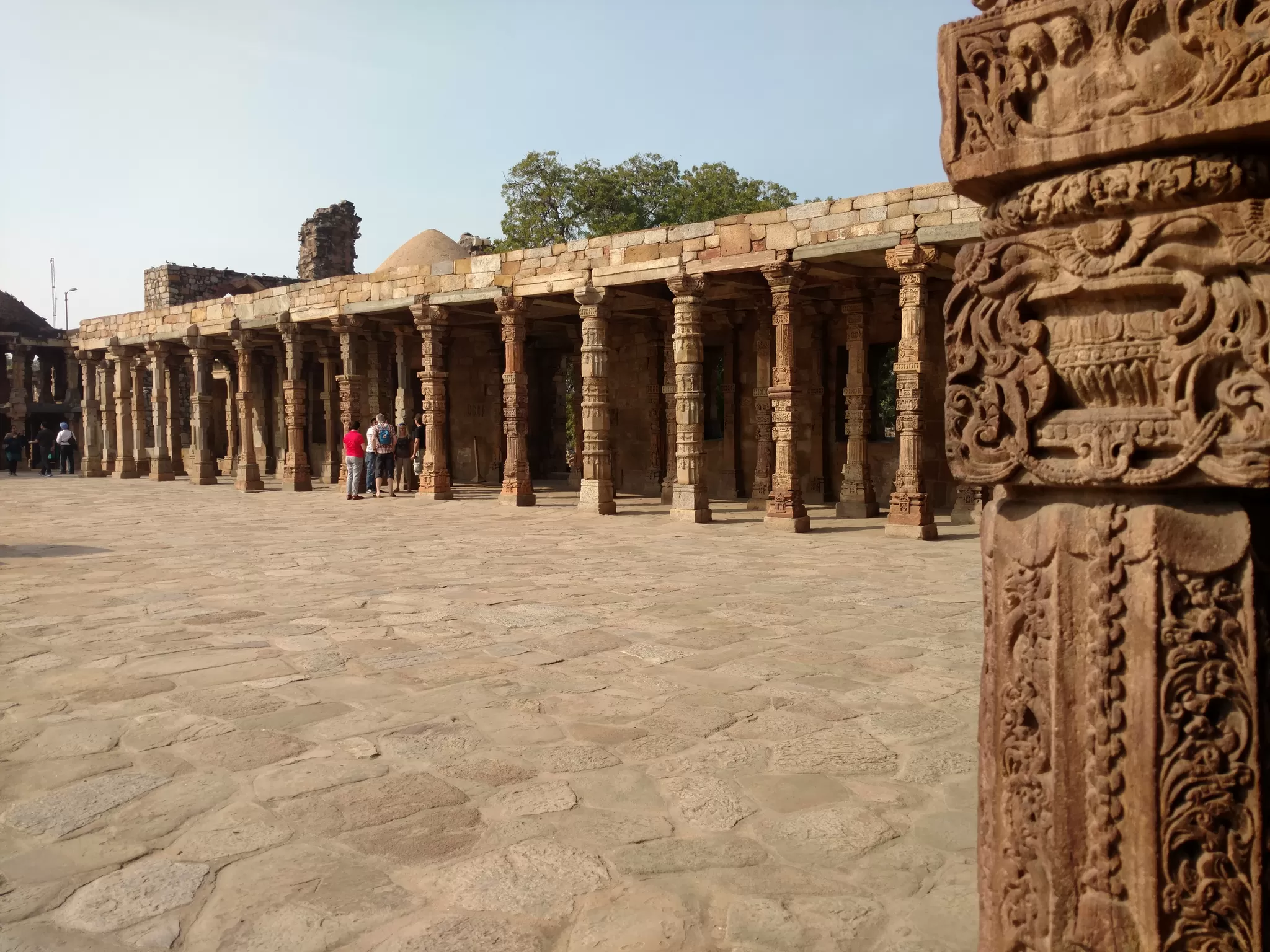 Quwwat-ul-Islam mosque: This is one of the oldest and largest mosques in India, built by Qutb-ud-din Aibak in 1193 CE.The mosque has a large courtyard, a prayer hall, and several columns and arches that display Hindu and Islamic motifs.