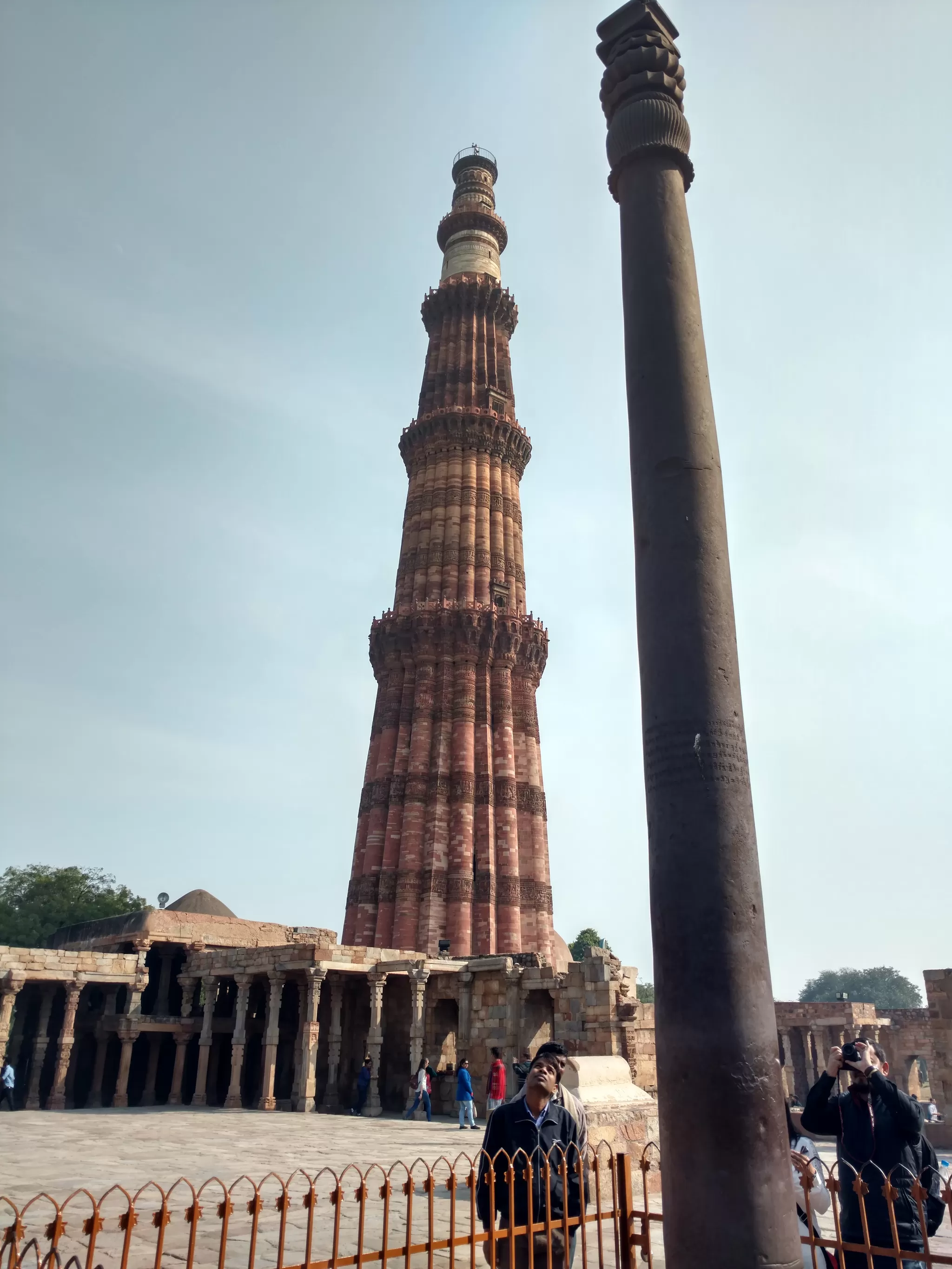 Qutub Minar, a UNESCO World Heritage Site in Delhi, India, is the tallest brick minaret in the world, reaching 239 feet towards the sky. Qutub Minar is known for the Iron Pillar of Delhi, a 6-tonne iron pillar that stands within the complex.