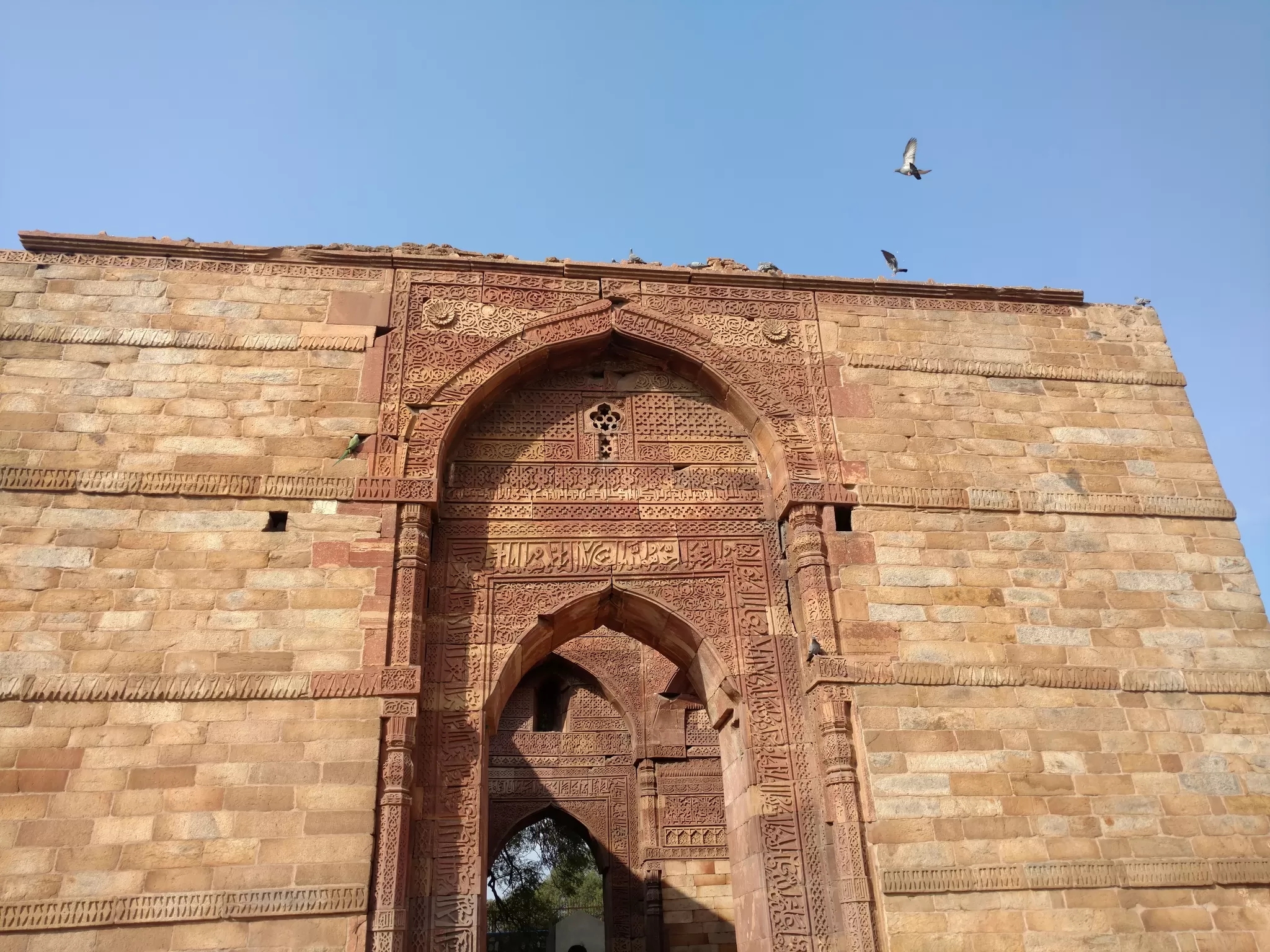 Alai Darwaza:This is a magnificent gateway that was built by Alauddin Khilji in 1311 CE. It marks the entrance to the Qutub complex and showcases the Turkish style of architecture. It has a domed roof, a pointed arch, and intricate carvings and inscriptions.